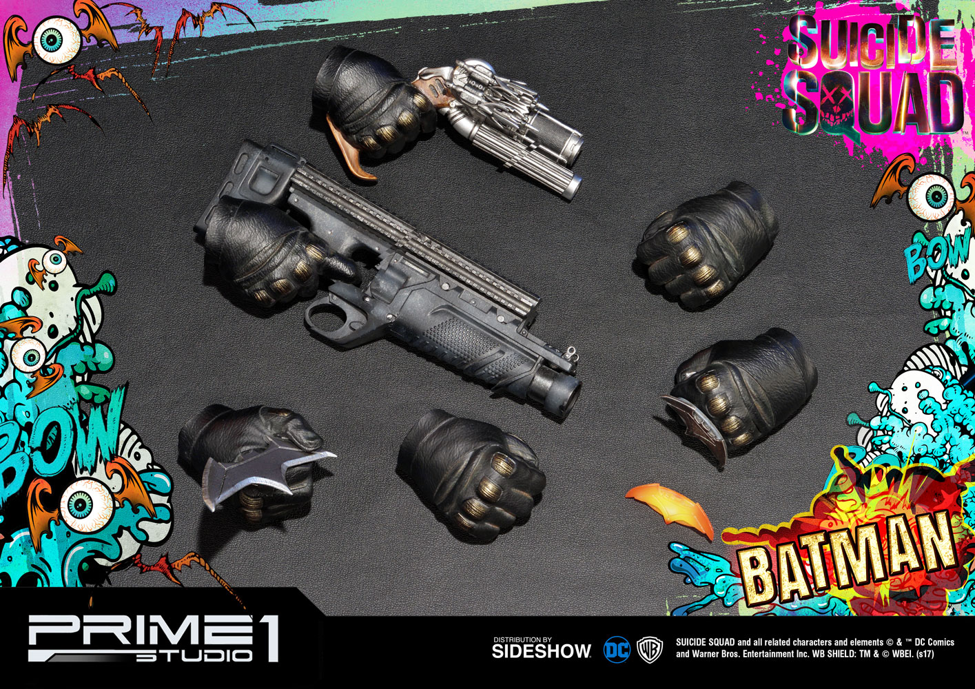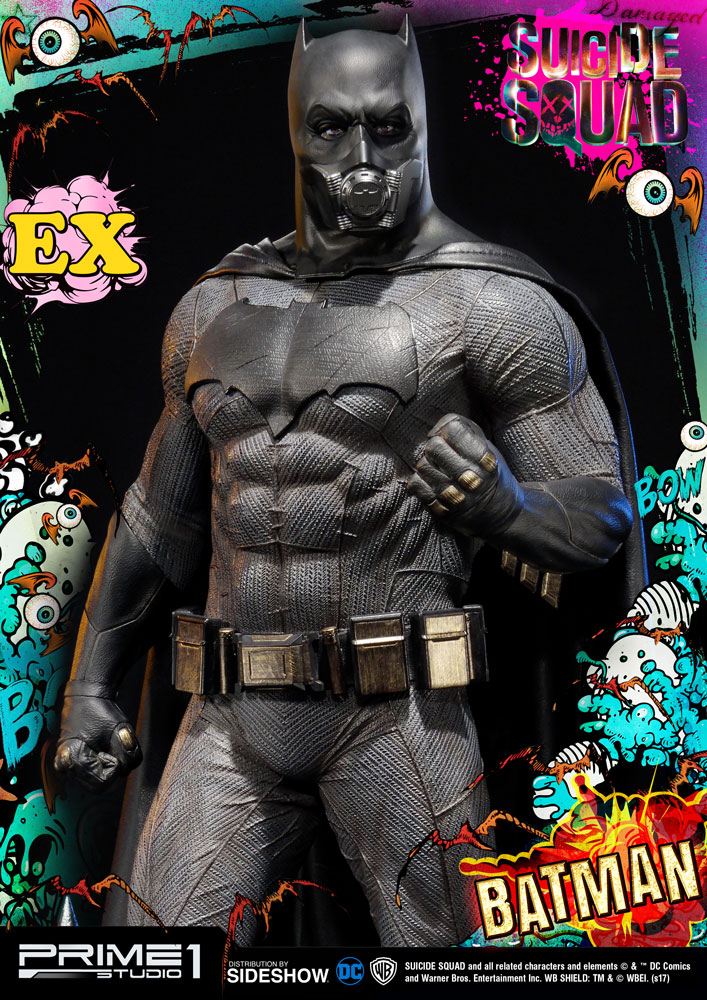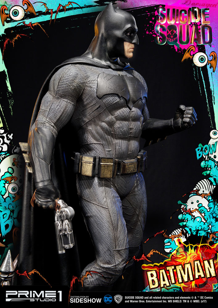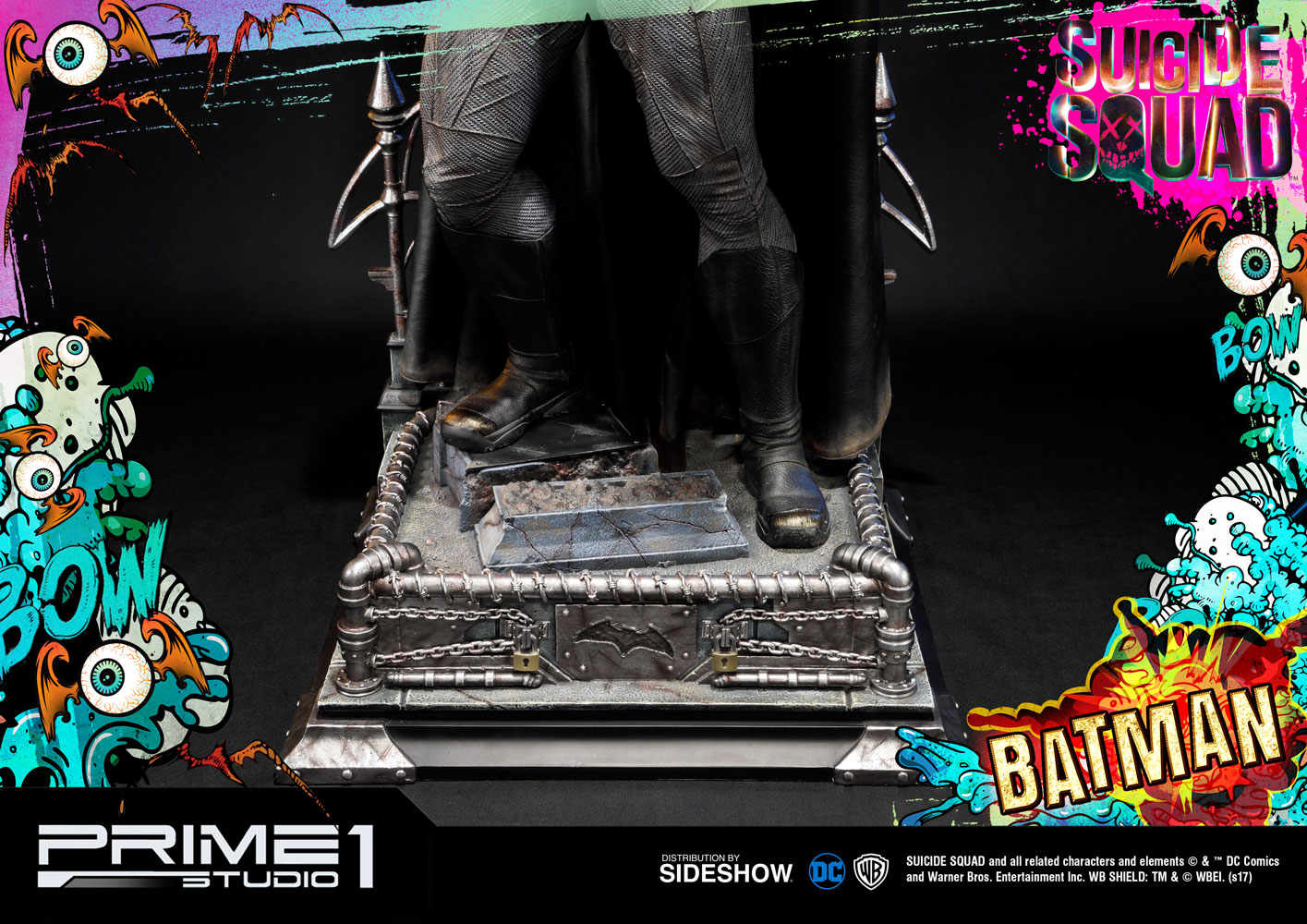 ABOUT THIS STATUEIt's over, Deadshot. I don't want to do this in front of your daughter.Sideshow and Prime 1 Studio are proud to present Batman from Suicide Squad Movie (2016). Batman is crafted in 1:3 scale with great attention to detail and stands around 31 inches tall.Fearing the actions of a god-like super hero left unchecked, Gotham City’s own formidable, forceful vigilante takes on Metropolis’s most revered, modern-day savior, while the world wrestles with what sort of hero it really needs. And with Batman and Superman at war with one another, a new threat quickly arises, putting mankind in greater danger than it’s ever known before.LicenseDC ComicsTypeStatueManufacturerPrime 1 StudioWHAT'S IN THE BOX?The Batman Statue features:Size approximately 31 inches tallOne (1) interchangeable right-hand fistOne (1) interchangeable right-hand holding a grappling gunOne (1) interchangeable right-hand holding a grenade launcherOne (1) interchangeable right-hand holding a BatarangOne (1) interchangeable left-hand fistOne (1) interchangeable left-hand holding a branding iron with Two (2) Batman Symbols Two (2) alternate Batman Portraits One (1) alternate Exclusive portraitADDITIONAL DETAILS & DIMENSIONSExpected to ShipAug 2018 - Oct 2018Item shown is a prototype. When shipped, the final production piece may differ in appearance.Product Size30.70 H (779.78mm) x 15.74 W (399.8mm) x 14.17 L (359.92mm)*Dimensional WeightTBDInt'l Dim. WeightTBD* Size and weight are approximate values.SKU9030481PRICE$974.99SUICIDE SQUAD and all related characters and elements © & ™ DC Comics and Warner Bros. Entertainment Inc. WB SHEILD: TM & © WBEI. (s17)